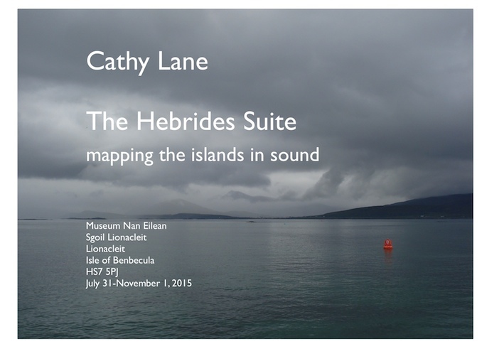 The Hebrides Suite: Mapping the Islands in Sound consists of three eight channel sound works and a large wall piece which maps the Uists according to field recordings made, and places mentioned, in the interview and archive materials used in the compositions.