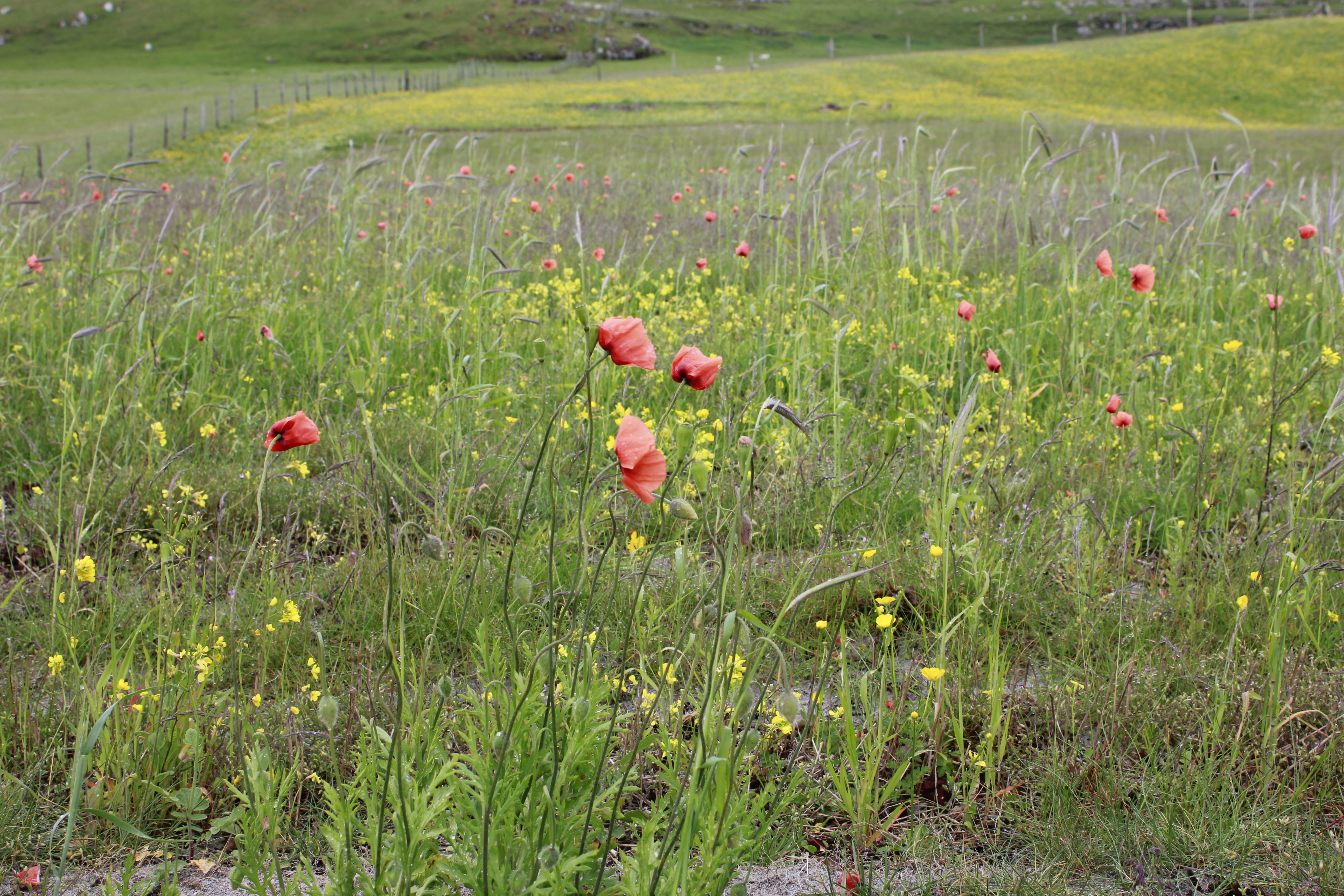 _MG_3229The machair supports the crofting lifestyles in terms of the plants, crops, animals and birds that can be found there. Over the spring and summer it is carpeted with wild flowers and the scent wafts over the islands on the wind. Where the machair meets the sea there is a chain of are glorious white sand beaches up the entire west side of the Outer Hebrides.